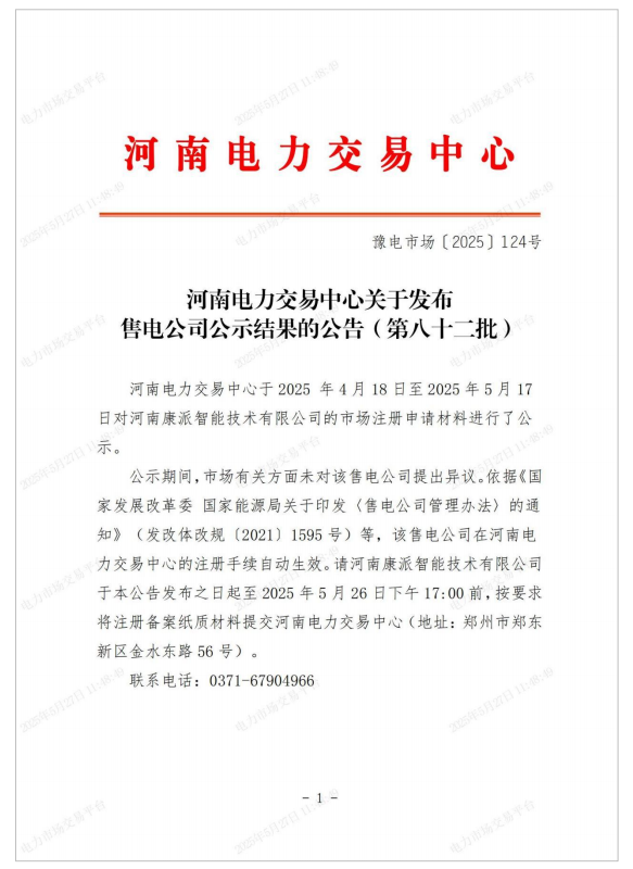 河南康派智能技術有限公司,在河南省擁有合法售電經營資格,并具有國家相關法規及文件所規定的售電設施、場所和專業能力。作為您身邊的能源服務專家,康派智能專注于通過電力交易服務、智能微電網投資建設等手段,為企業提供全方位的能源解決方案,有效降低用能成本,助力企業實現綠色低碳轉型。